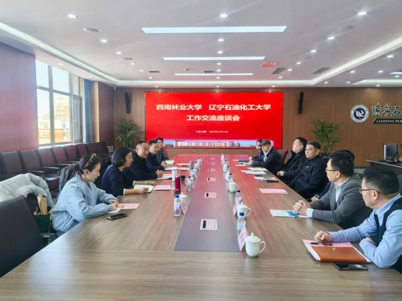 座谈会上,房贵新对郭华一行的到访表示热烈欢迎。他详细介绍了学校发展历程、学科建设、人才培养和办学特色。他表示,西南林业大学深耕学生思想政治教育,以“生态育人”为特色,在“一站式”学生社区和易班建设方面取得显著成绩,此次交流为两校互学互鉴、优势互补搭建了重要平台,希望加强联动、深化友谊,共同推动学生教育、管理、服务和保障工作高质量发展。两校相关职能部门负责人围绕学生思想政治教育、劳动教育、学生资助、安全管理、心理健康教育等领域进行了深入探讨和交流。郭华表示,辽宁石油化工大学贯彻“以生为本”的工作理念,在学生精细化管理服务等方面的实践经验极具借鉴和推广价值,希望通过此次交流为西南林业大学育人工作提质增效注入新动能。